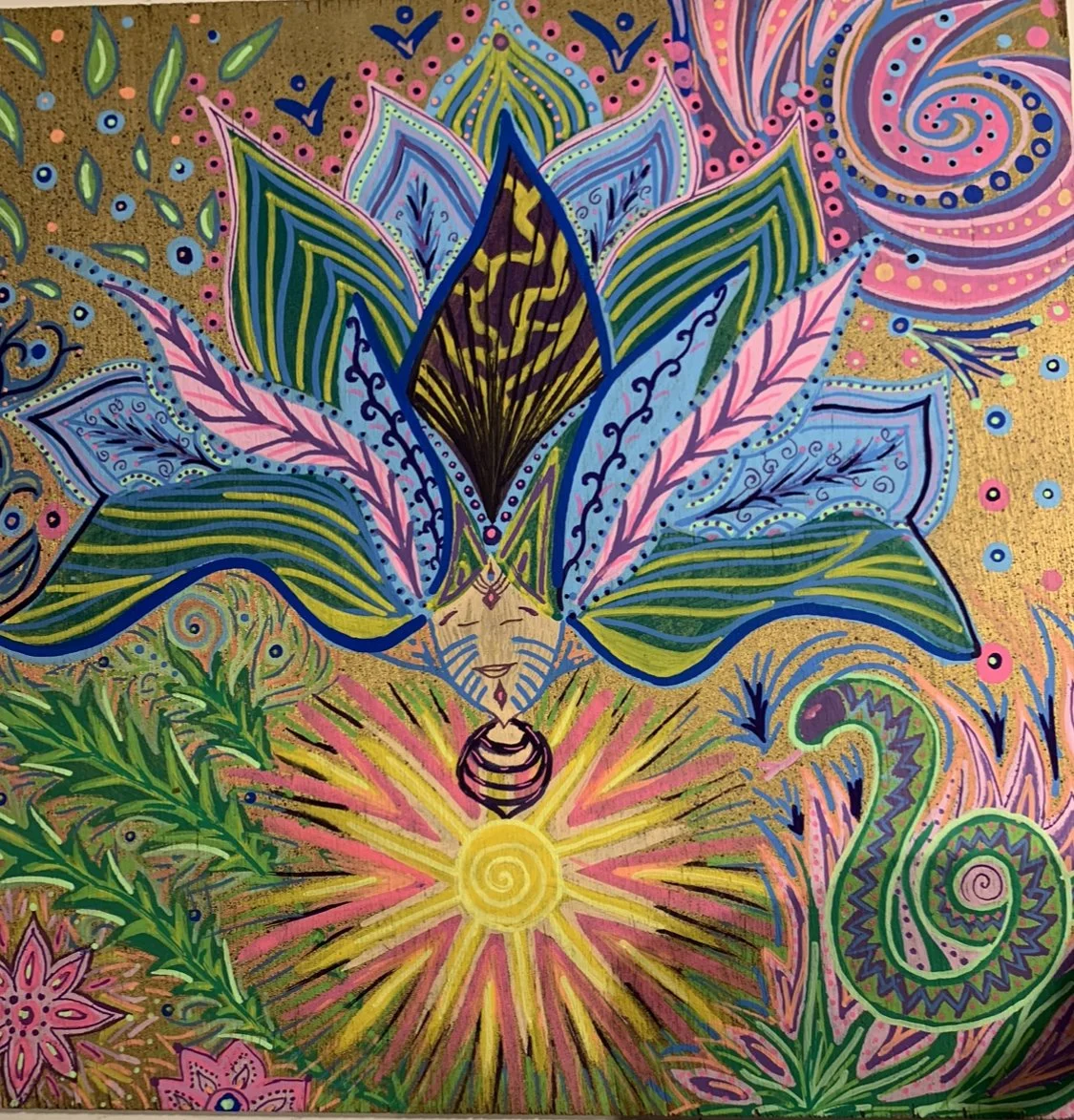 Ik hou van creatief bezig zijn, schilderen, tekenen, schrijven, en vooral het proces dat ermee gepaard gaat draagt vaak vele diepgaande en verhelderende leer- en levenslessen. Dit is iets dat ik als kind al heel graag deed, uren kon ik spenderen aan mijn tafeltje met allerhande materialen om iets uit te maken. En zeker, als ik mezelf verdrietig, boos, vol twijfel of machteloos voelde, gaf ik mezelf over aan het creatieve proces, zonder te weten waar het naartoe zou leiden. Dat doe ik nog steeds, het is niet super verfijnd of vol expertise, er schuilt geen academisch talent achter (helaas heb ik nooit academie gevolgd hiervoor), maar het brengt me iets; vreugde, passie, veiligheid, geborgenheid, flow, wanneer ik het laat ontstaan zonder meer…